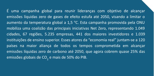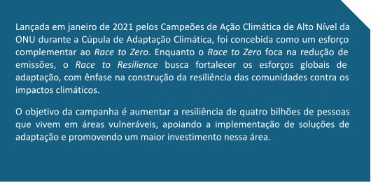 Para maiores informações sobre “Race to Zero” e “Race to Resilience”, veja os quadros explicativos baixo: