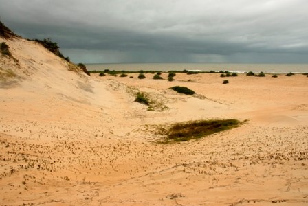 Outra história diz que a vegetação foi retirada por moradores da região que queriam aumentar o espaço físico da vila. Sem essa espécie, a areia das dunas ficou solta e foi se acumulando no antigo vilarejo.