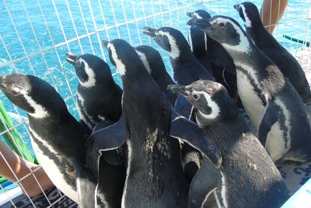 Pinguins que passaram por reabilitação são soltos em Iriri